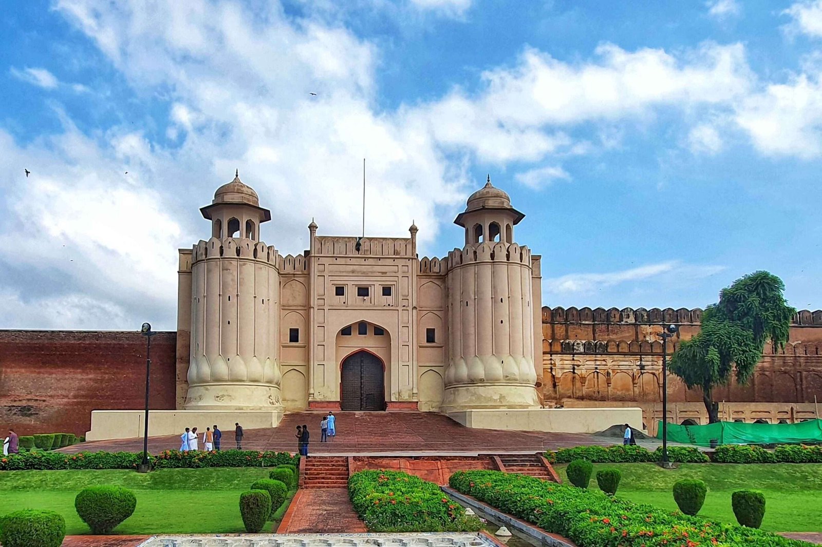 The gate is one of Lahore's most iconic monuments built by Mughal emperor Aurangzeb Alamgir in 1674. It has two semi-circular bastions where lotus petal design adorns its base. Through its wide arched entrance, the king would enter the fort on his elephants.